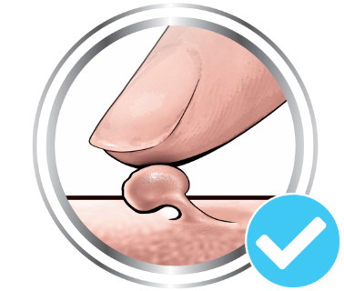 Wenn Ihre Stielwarze nicht alle 4 Merkmale aufweist, wenden Sie das Produkt nicht an. Suchen Sie einen Arzt auf, falls es sich um eine ernstere Hauterkrankung handeln sollte.